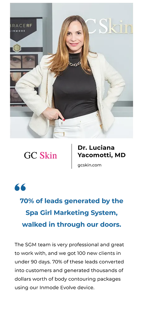 The Spa Girl Marketing System is a fully automated system that helps Med Spas thrive with our all-in-one sales & marketing platform designed specifically for the aesthetic industry, ensuring you capture, nurture and close your leads.